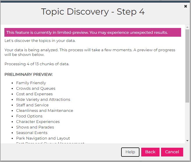 - Use the Topic Discovery Wizard to generate AI-driven topics based on your unique dataset.