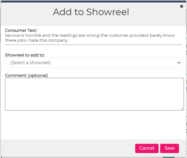 Showreels allow for easy organization of comments you discover through the text analytics tool. Showreels can be used to expedite the process of creating PowerPoint presentations.
