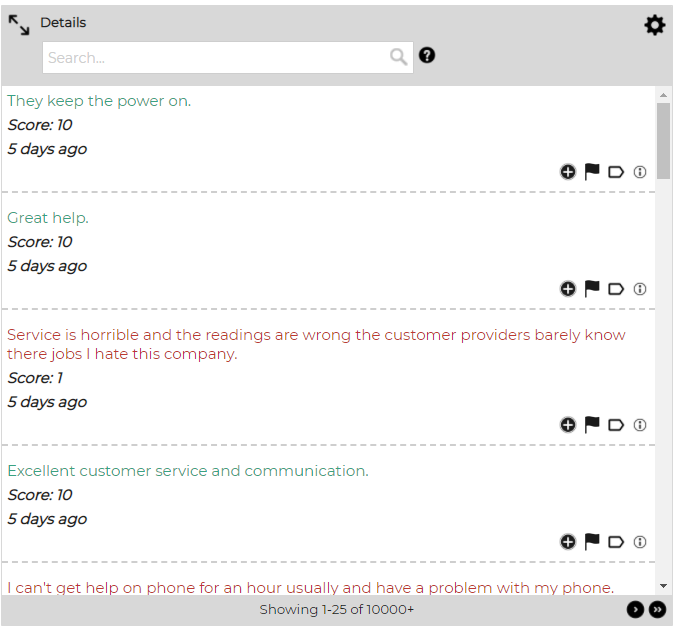 • Red – Only negative, or predominantly negative sentiment was detected within the comment